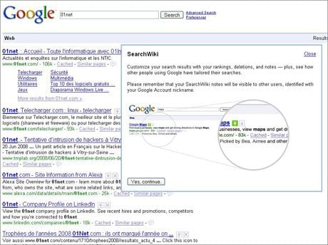 dinosaures ‘, peut-on lire aujourd’hui sur l’ex-page d’accueil.Reste à savoir quel sera l’accueil des utilisateurs. Si SearchWiki est majoritairement accepté par les internautes, les entreprises qui paient de coquettes sommes à des sociétés de reférencement pour améliorer leur positionnement dans