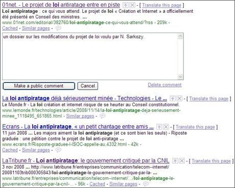 De la même manière, si l’internaute désire avoir accès aux résultats classiques, il lui suffit de taper une requête sans être identifié. Il est également possible de commenter chaque lien, en cliquant sur une bulle. L’utilisateur peut