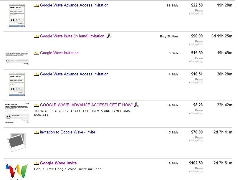 Parmi les 100 000 chanceux sélectionnés pour tester la bêta de Wave, le futur outil communicant de Google, certains internautes vénaux essayent d’obtenir quelques espèces sonnantes et trébuchantes en monneyant des invitations.