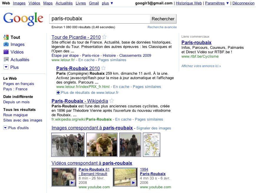 Selon le type de requête, l’ordre des catégories s’adapte dans le bandeau (actualités, images, vidéos…). Par exemple, le mot-clé « Marseille » fait monter le service de cartographie Google Maps en tête des catégories, devant les actualités, les blogs et les vidéos. Le nom d’un homme politique mettra en avant le filtre Actualités. Une requête concernant un objet proposera la catégorie shopping, suivie des blogs et des images.