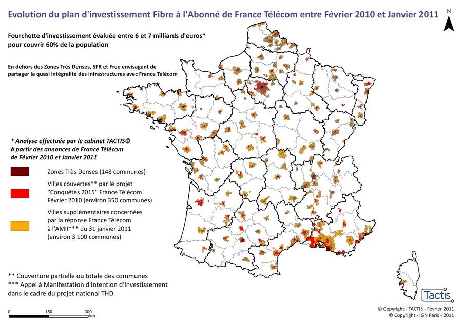 Pour couvrir 3 600 communes en 2015, l’opérateur prévoit un budget de 2 milliards d’euros. « L’ambition renforcée de France Télécom est une bonne chose, mais le montant de l’investissement est très surprenant », estime Tactis. « FT présente un budget inchangé par rapport aux annonces de février 2010, qui couvraient alors environ 500 communes, soit 40 % de la population. Comment expliquer que l’on puisse couvrir 7 fois plus de communes et 50 % de population en plus pour un même montant ? »