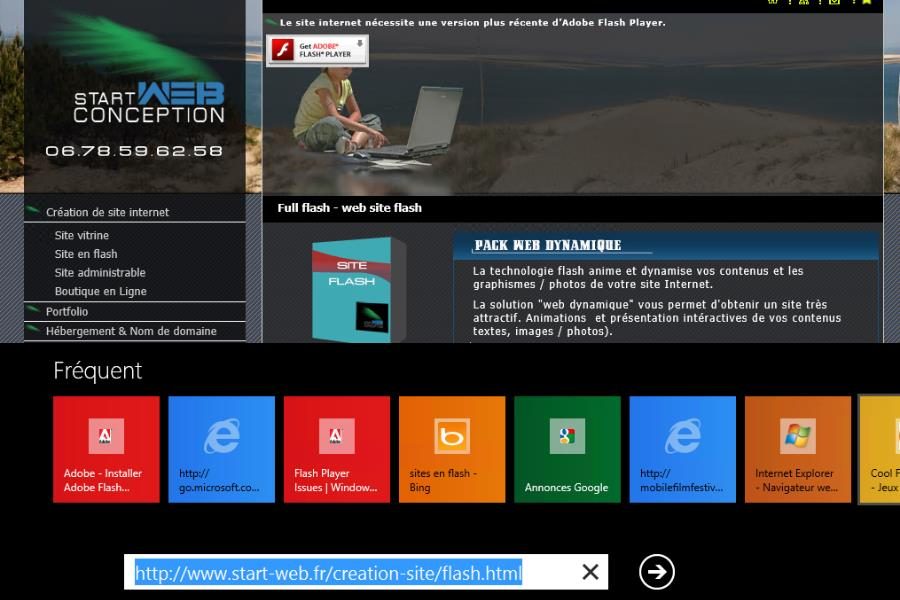 Si, en théorie, Flash est supporté, en pratique, le lecteur Flash intégré ne se déclenche que si le site visité est référencé dans une liste de sites compatibles dont seul Microsoft a les clés. L’utilisateur n’a pas de solution pour forcer l’utilisation du Flash sur les sites non reconnus. Du coup, bien des pages Web ne s’affichent pas correctement dans l’environnement tactile.