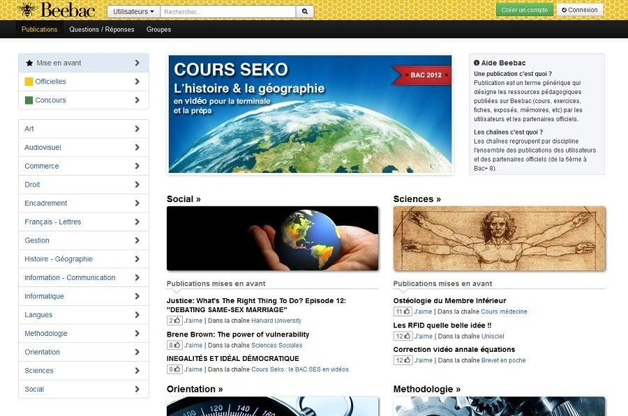 Créé par trois Français, Beebac regroupe plus de 30 000 contenus publiés par les utilisateurs ainsi que par des partenaires tels que : Unisciel (Université numérique thématique des sciences fondamentales), le groupe L’Etudiant, HEC, Epitech, Harvard University… L’objectif : la réussite de chacun à travers le partage des connaissances et les interactions entre utilisateurs.