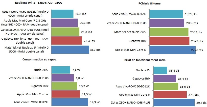 Les moins : Bruyant, mémoire simple canal (10 % de performances en moins par rapport au Brix)