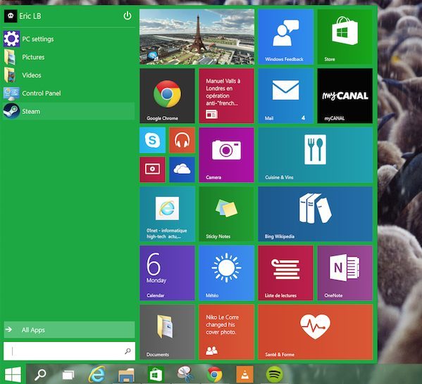 Autre nouveauté esthétique : il est désormais possible de modifier la taille du menu Démarrer, tout au moins en hauteur. Sa largeur évolue elle, à mesure que vous ajoutez des applis dans le volet droit.