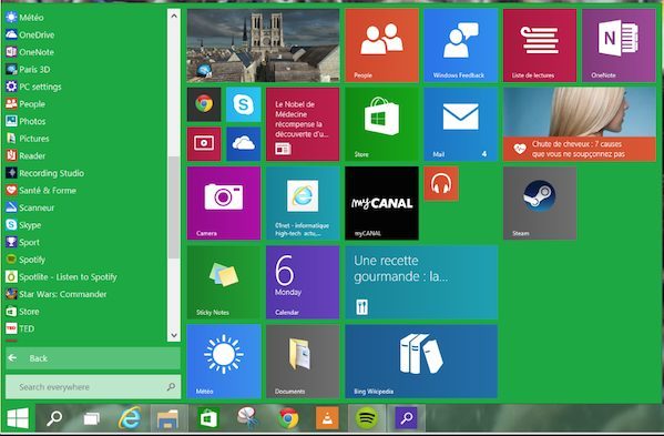 Les premières minutes en compagnie de Windows 10 peuvent s’avérer décevantes. Car au premier abord, il n’y a dans cette version que des différences minimes par rapport à Windows 8. L’écran d’accueil n’a pas bougé. Fenêtres et barre de tâches ont conservé le même design, même si les bordures ont été affinées. A peine distingue-t-on quelques discrètes corrections : des icônes, comme celle de l’explorateur de fichiers, ont changé. D’autres, comme Task View et Recherche, sont apparues dans la barre des tâches. Des petits riens.