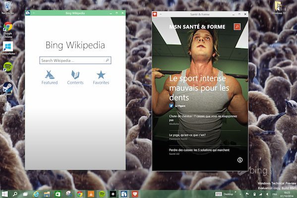 Windows 10 corrige en grande partie ce problème non seulement par le retour du menu Démarrer, mais aussi parce qu’il permet enfin de faire tourner les nouvelles applis en mode fenêtré, directement sur le bureau. On peut désormais, comme sur n’importe quelle application classique, lancer une appli en fenêtré, et les redimensionner (jusqu’à un certain point). Ceci occasionne d’ailleurs bien des bugs d’affichage, les applications du Store n’étant pas encore optimisées pour Windows 10.