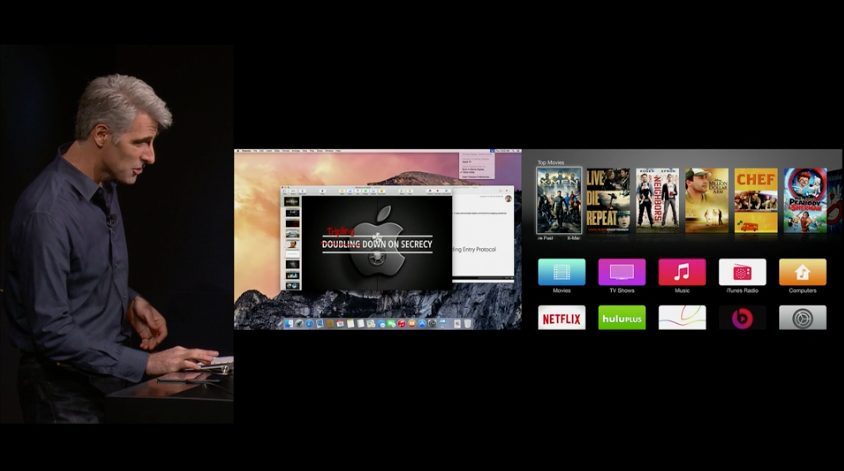 19h22 : Mac OS X Yosemite. Apple fait le tour des nouveautés de l’OS, que vous pouvez aussi découvrir ici dans notre article dédié. Maildrop, iCloud Drive, Mail…