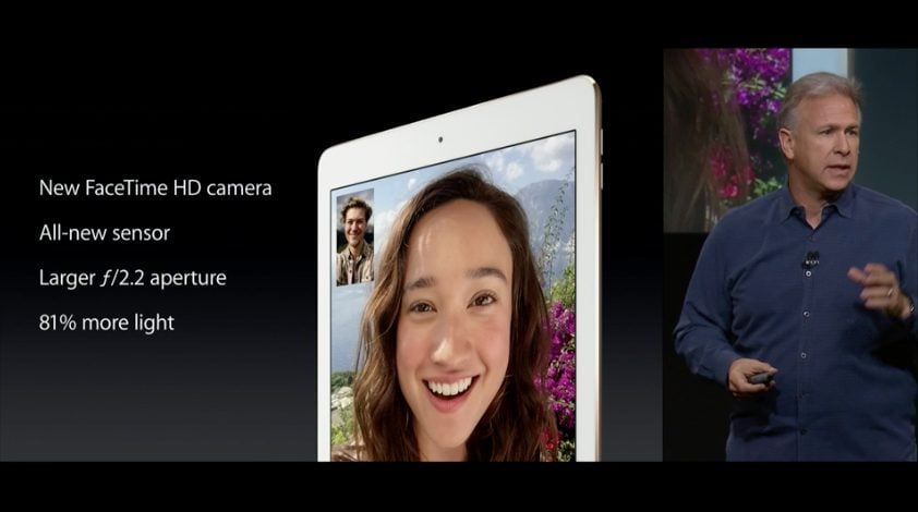 19h44 : ” Comment avons-nous fait ? Nous avons supprimé des couches entre la matrice et la surface de la dalle. L’iPAd Air 2 est si fin qu’on peut en mettre deux l’un sur l’autre et ils seront moins épais que l’iPad de première génération. 56% de reflets en moins. La seule tablette à avoir ce taux de reflets…”