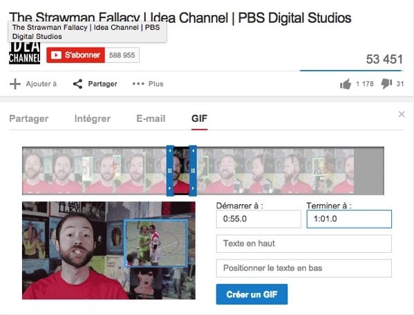 Le règne de la pensée résumée à quelques secondes d’un mouvement perpétuel est proche ! Pour l’instant, cette fonction est extrêmement discrète sur YouTube. Malgré une recherche assez longue, nous n’avons pas été plus heureux que nos confrères américains de Gizmodo et n’avons trouvé cette fonction active que sur la chaîne de l’excellent PBS Idea Channel.