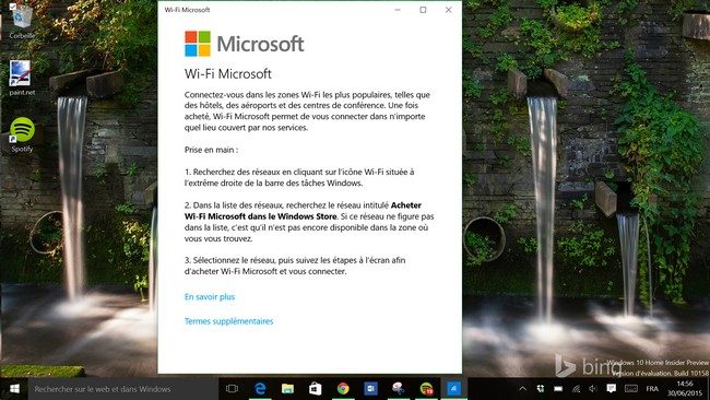 La firme de Redmond a également intégré une présentation de son nouveau service Microsoft Wi-Fi à cette build. Rappelons que ce service permet de localiser partout dans le monde des hotspots pour se connecter en Wi-Fi.
