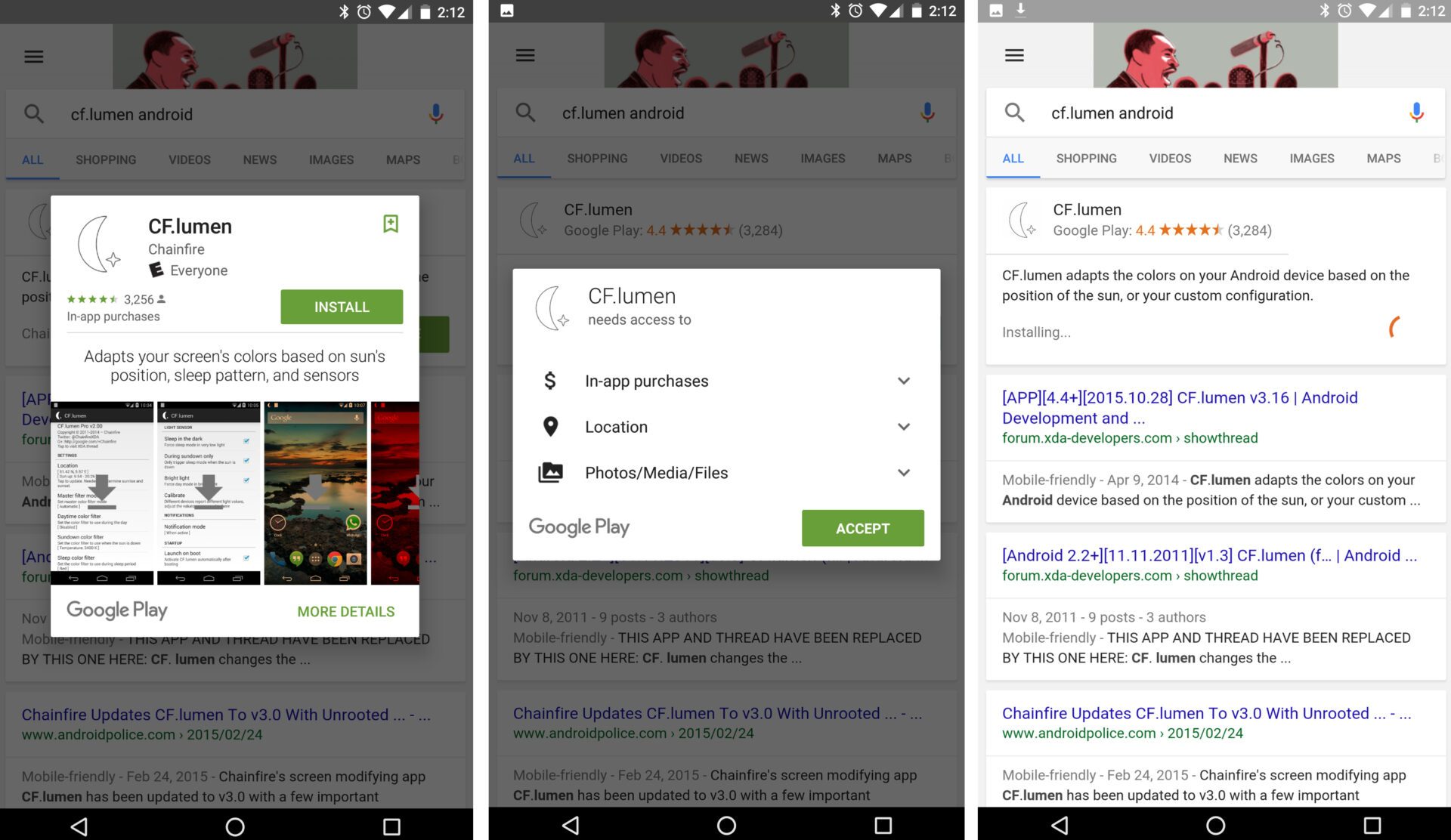 Pour les millions d’utilisateurs d’Android, l’installation d’une nouvelle application nécessite forcément de passer par le Play Store. Une étape que Google semble vouloir supprimer, notamment lorsqu’on passe par son moteur de recherche. Selon le site Android Police, de nombreux utilisateurs ont constaté ces derniers jours que lorsqu’ils recherchent une application depuis l’application Google Search, il est possible de la télécharger en un clic seulement. A noter que pour l’instant, ce téléchargement direct n’est pas disponible si vous utilisez Chrome.