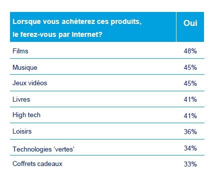 L’enquête annuelle sur les intentions d’achat des internautes pour Noël de la Fevad confirme cette utilisation du Web : 85 % des internautes consulteront Internet pour préparer les fêtes (cinq points de plus qu’en 2011) et 70 % d’entre eux y feront leurs cadeaux. Et lorsqu’on leur demande pourquoi, 53 % mettent en avant le grand choix ; 64 % le moindre coût des produits.