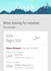 Plus besoin de rechercher l’information. C’est elle qui vient à vous. Pour activer le service, il suffit de maintenir appuyée la touche Home d’un appareil sous Android 4.1 ou de déverrouiller l’écran d’accueil d’Android en glissant son doigt vers le haut. Google Now affiche des informations en fonction de votre position géographique, de vos habitudes ou des rendez-vous inscrits dans votre agenda. Ainsi, il donne les renseignements sur votre vol quand vous êtes à l’aéroport, il vous renseigne sur le trafic routier avant que vous ne preniez la voiture pour aller travailler le matin, etc.