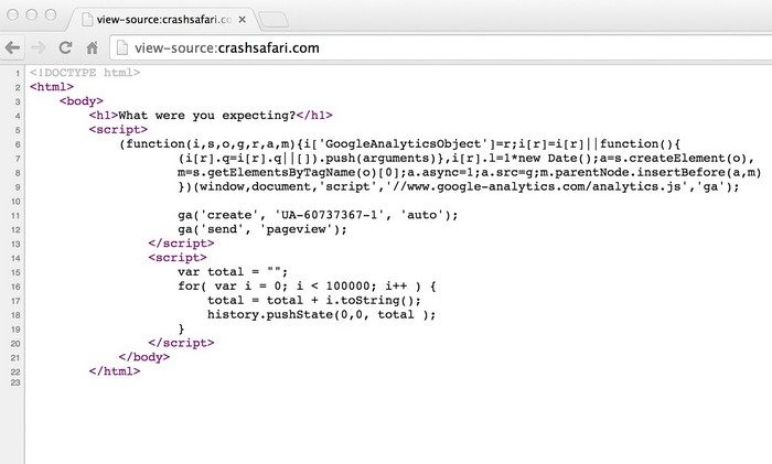 Crashsafari.com est le site où il ne faut pas aller. Non pas parce que son contenu est inintéressant ou parce qu’il est dangereux mais parce qu’il va immanquablement faire planter le navigateur et le smartphone sur lesquels il a été lancé.