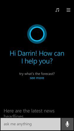 Cortana -qui remplace complètement l’outil de recherche intégré à Windows Phone, d’ailleurs- vous permet donc de passer des commandes vocales (ou par le biais du clavier virtuel) à votre mobile. Jusqu’ici, c’est plutôt classique : on peut lui demander le temps qu’il fera demain, d’appeler un contact, de lancer une application, d’ajouter un événément au calendrier etc. Le tout fonctionne avec Bing, qui l’anime.