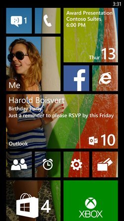Du coup, Windows Phone 8.1 intégrera une nouvelle option de personnalisation qui va permettre de remplacer le fond de toutes les tuiles des applis de base par la photo de votre choix. Le résultat est pour le moins… étonnant, mais rend clairement l’écran d’accueil plus sympa à consulter. Seul petit souci de cette nouvelle fonction : elle n’est apparemment pas comptible -d’après les démos que nous avons effectuées- avec les tuiles des applications tierces. Du coup, votre image est souvent tronquée par des tuiles d’autres couleurs. Dommage.