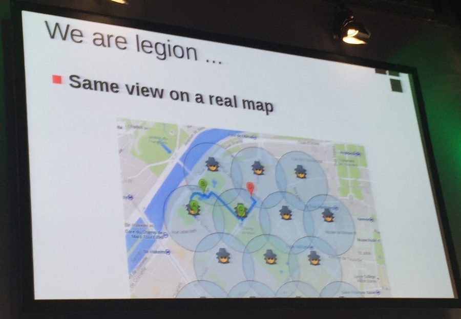La démonstration a été fournie samedi 2 juillet, à l’occasion de la conférence Nuit du Hack 2016. Julien Legras et Julien Szlamowicz, deux chercheurs en sécurité de la société Synacktiv, ont développé un logiciel permettant de détecter la présence d’une personne dans une zone donnée et de surveiller ses déplacements. Comment? En déployant sur cette zone une grille d’agents-utilisateurs qui correspondent aux désirs de rencontre de la personne ciblée, ce qui activera les notifications de présence.