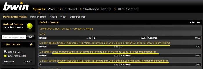 BWin de son côté proposera 150 paris différents à chaque match durant l’événement : des paris en live, sur le meilleur buteur, sur le résultat à la mi-temps… Et quelques nouveautés comme le Money Back, nous explique le directeur général France de l’entreprise, François-Xavier Nottin. Sur certains matchs et dans des conditions précises il permettra aux joueurs d’être remboursés : par exemple si le Brésil perd le match d’ouverture, BWin remboursera les parieurs. « Avec cette offre sans risque, nous espérons attirer de nombreux joueurs occasionnels, explique le dirigeant. Car ce sont surtout eux qui parieront à l’occasion de la Coupe du monde. »