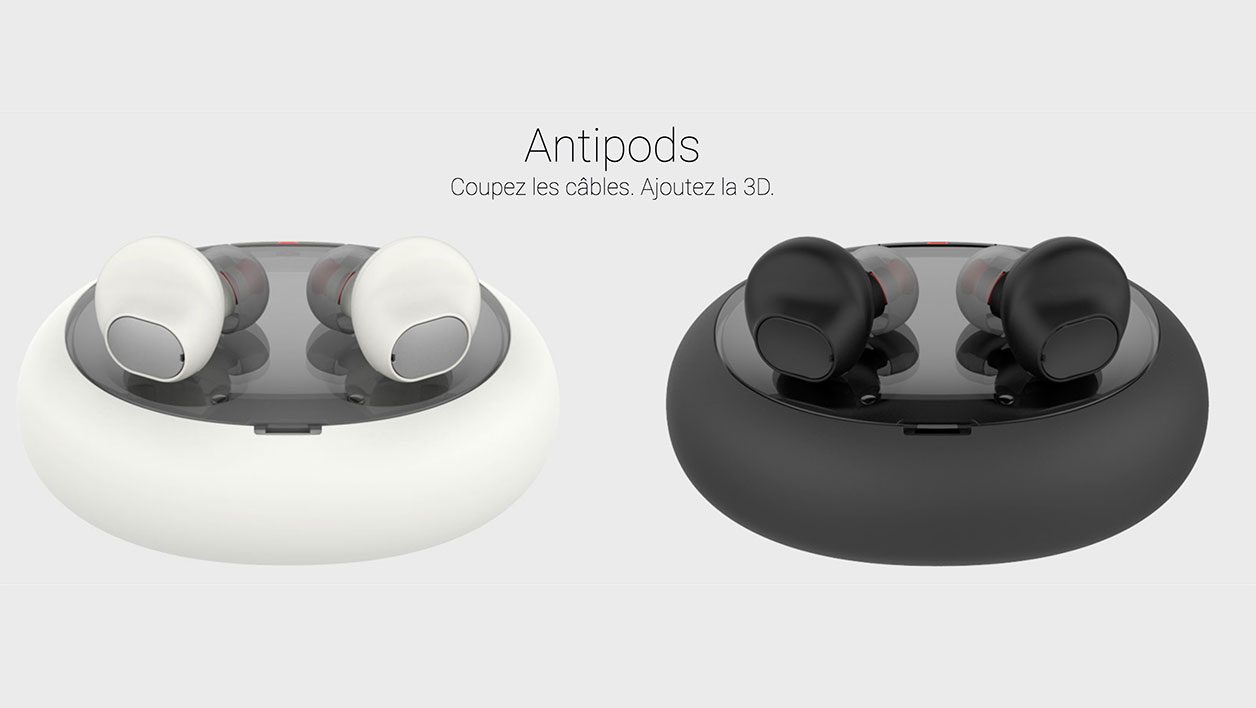 Le modèle est baptisé Antipods, un nom qui fait forcément écho à celui du modèle lancé par Apple en 2015, les AirPods. “Oui, c’est un clin d’oeil, mais le but est surtout de marquer notre différence de vision. Nous pensons que des écouteurs True Wireless doivent être le plus compact possibles.” s’amuse David Grasso. Effectivement, les AntiPods sont plus discrets que les AirPods, plus discrets aussi que la plupart des modèles similaires présentés cette année par les grands noms de l’électronique grand public (Sony, Philips, Samsung, JBL…).