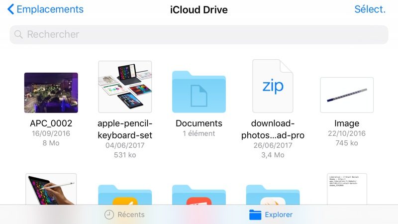 Si le « bureau » est toujours absent, iOS possède désormais un « gestionnaire de fichiers », un Finder. Fichiers permet d’accéder non seulement à tous les documents présents dans votre espace iCloud mais regroupe également l’accès à vos autres services de stockage : votre iDevice, Dropbox, Drive, Mega, ou encore à votre NAS.