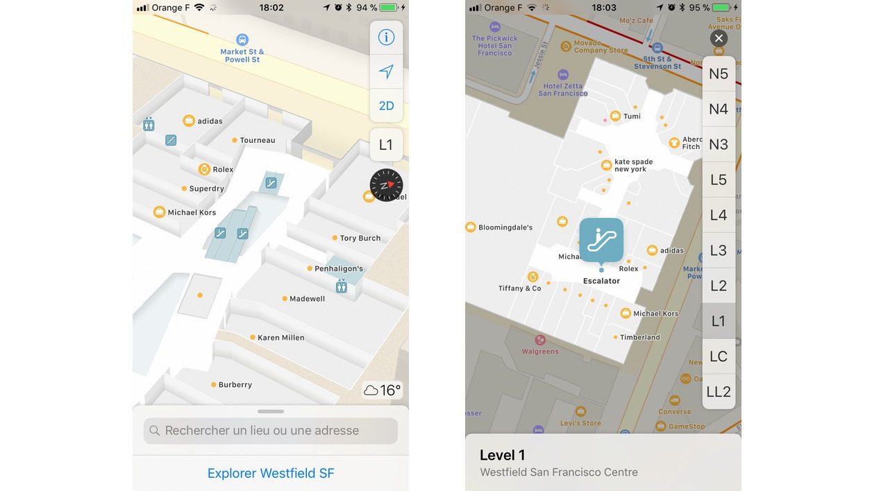Depuis ses débuts, Plans a beaucoup évolué. Avec iOS 11, il prend une nouvelle tournure et permet d’afficher des plans à l’intérieur des bâtiments ouverts au public, comme des aéroports, des centres commerciaux, etc. Pour l’instant, cette fonction est surtout disponible aux Etats-Unis, mais la France devrait en bénéficier prochainement.