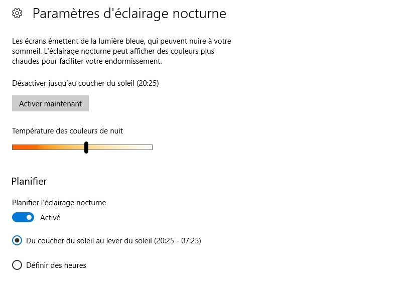 Il devient aussi possible de changer la teinte d’affichage le soir afin de limiter l’émission de lumière bleue et donc de ne pas nuire ensuite à l’endormissement.