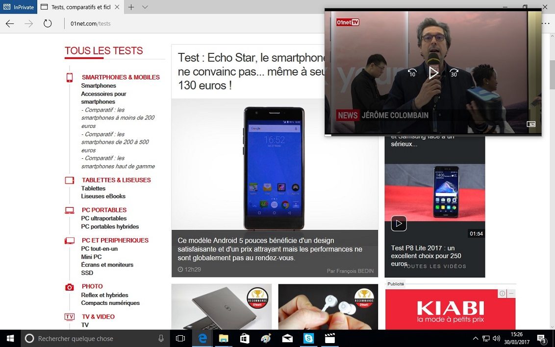 Autre avantage de la Creators Update dans le domaine de l’affichage, certaines applications vont disposer d’un mode minilecteur qui est l’équivalent du mode PIP (Picture In Picture) sur les téléviseurs. Par exemple, la lecture d’une vidéo avec le programmes Films et TV, qu’il a fallu mettre à jour, peut se faire sous la forme d’une miniature qui reste toujours en avant plan et dont on peut changer la taille et la position.