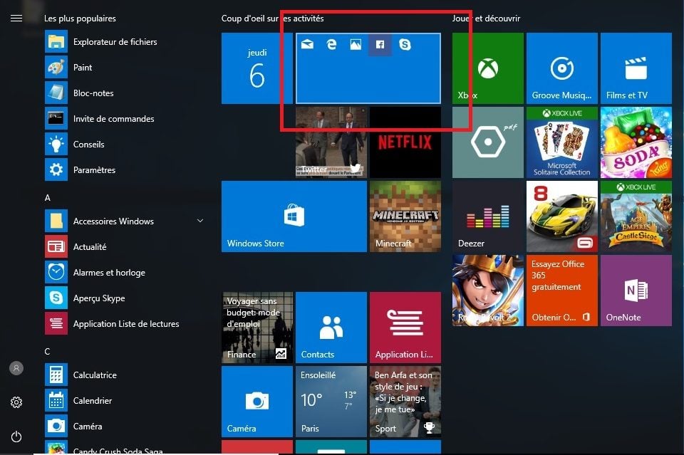 Microsoft ajoute toutefois dans son OS trois fonctions d’affichage pratiques. La première permet de regrouper plusieurs tuiles du menu Démarrer en une seule tuile comportant des miniatures.