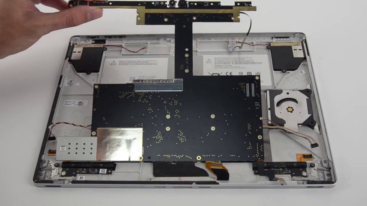La base de la Surface Book, comportant le clavier et une seconde batterie, se révèle également difficile à ouvrir mais cela reste possible avec les bons outils.
