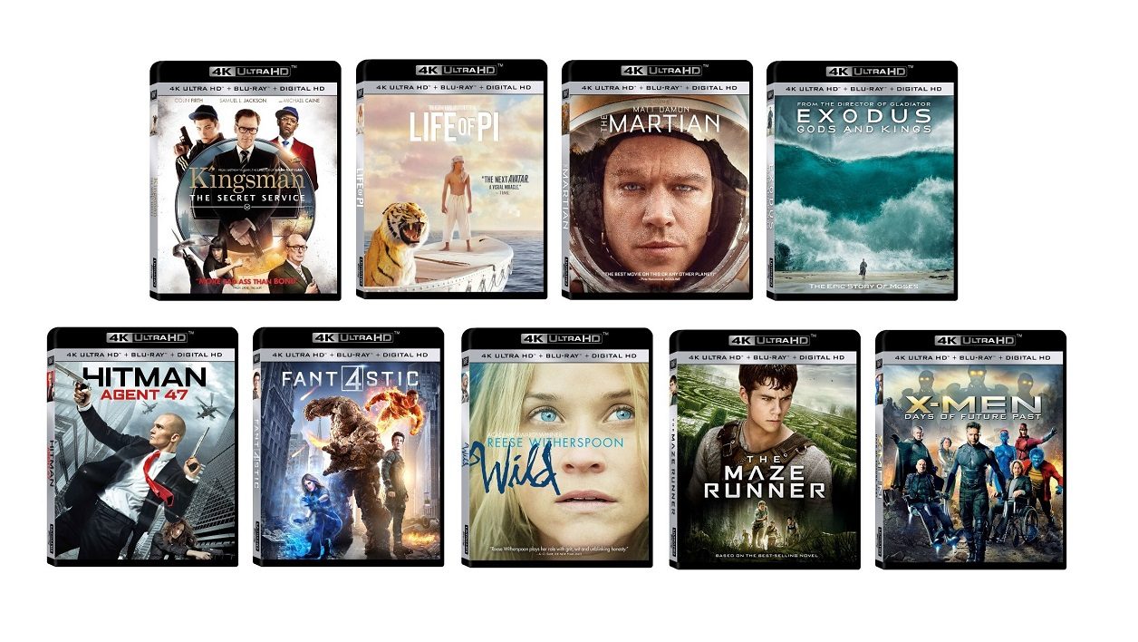 Actuellement, une vingtaine de titres sont disponibles en Blu-ray 4K Ultra HD. Citons entre autres Seul sur Mars, Exodus Gods and Kings, X-Men Days of Future Past, L’Odyssée de Pi, Les 4 Fantastiques, Le Labyrinthe et Le Labyrinthe La Terre Brûlée… Une centaine de titres devrait être disponible au cours de l’année 2016 et les éditeurs privilégient le format « combo » avec, pour environ 30 euros, le Blu-ray 4K Ultra HD, mais aussi le film en Blu-ray standard et en version numérique pour le regarder par exemple sur une tablette ou sur un smartphone.