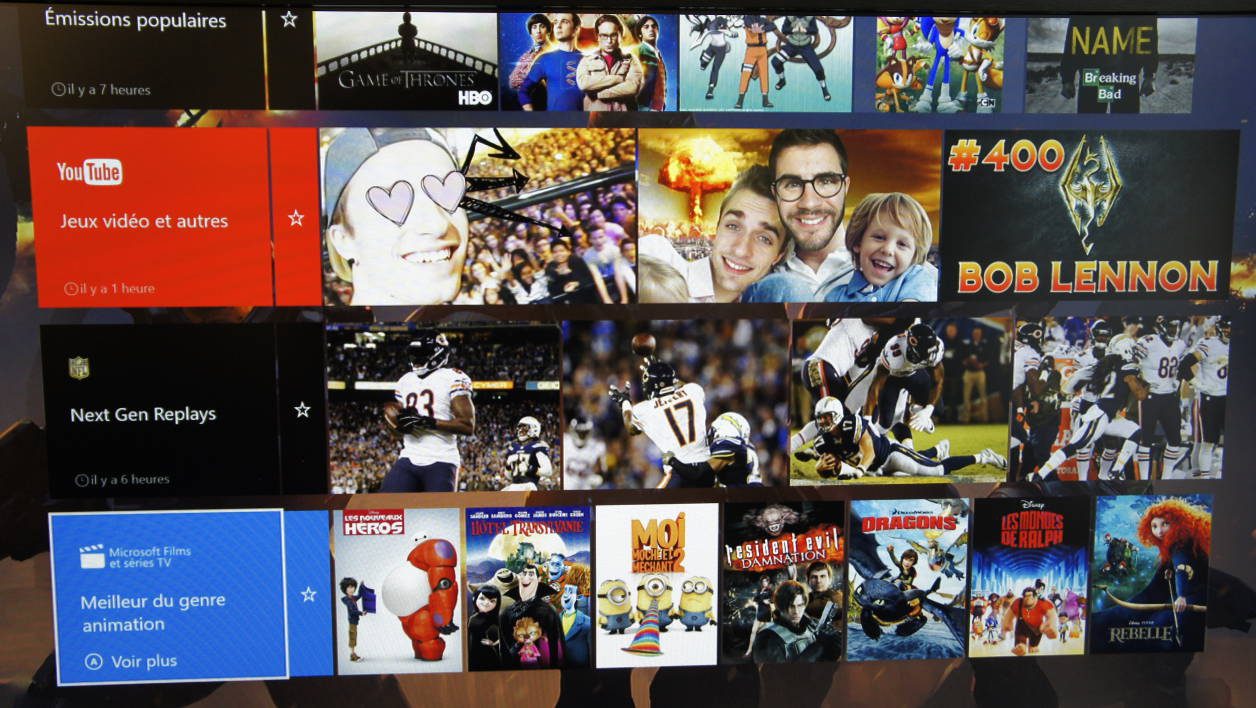 Si vous avez pour habitude de consommer du streaming ou des vidéos tournés par des YouTubeurs ou des shoutcasters Live, la nouvelle interface leur fait une impressionnante place via la nouvelle rubrique Oneguide. En quelques coups de sticks, nous voilà au coeur de la jungle des applis vidéos.