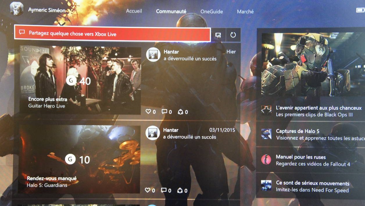 Pour les amateurs de succès et de compétitions entre amis, la nouvelle expérience Xbox One affiche les dernières acquisitions de façon beaucoup plus lisible. D’une pression de bouton, on les partage, on “like” celles des copains.