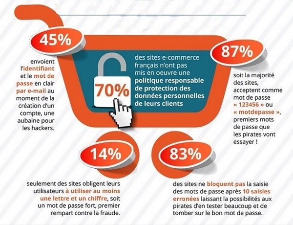 Hélas, une étude réalisée par Dashlane, société spécialisée dans la sécurisation informatique des comptes clients, révèle que les sites de vente en ligne français se montrent encore très majoritairement imprudents (70 %) quant à la protection des données personnelles des consommateurs.