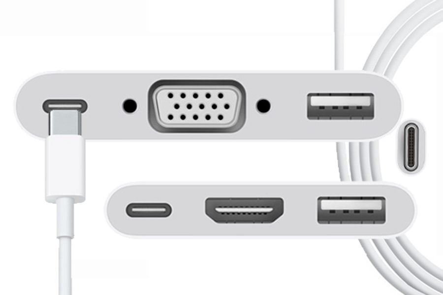 Comptez ainsi 19 € pour un adaptateur USB-C vers USB, et 90 € pour un chargeur supplémentaire : 35 € pour le câble + 55 € pour l’adaptateur. Pour ceux qui voudraient à la fois bénéficier d’un port USB classique, et d’une sortie HDMI, il faudra obligatoirement passer par un adaptateur à… 89 € ! Pour ceux qui sont équipés d’un écran VGA, le même adaptateur au format adéquat leur coûtera le même prix. Autant dire que cet adaptateur “multifonction” aura logiquement la préférence des possesseurs de MacBook 12 pouces tant il se montrera indispensable au quotidien.