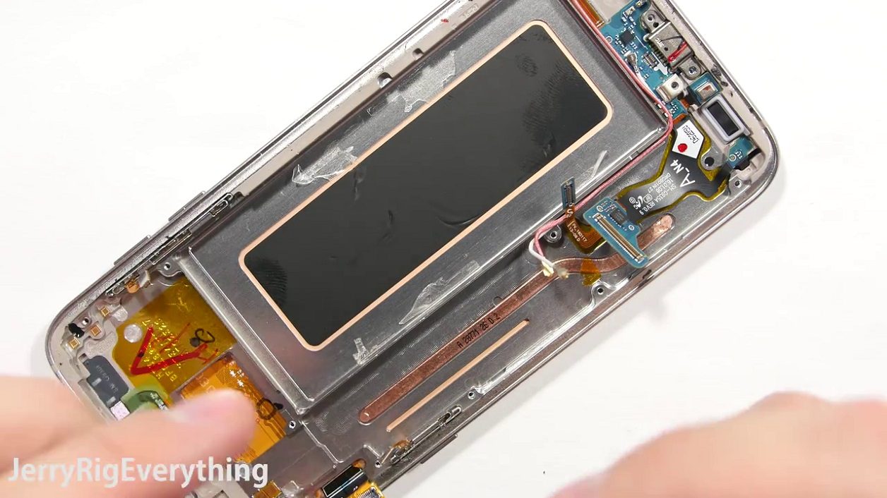 Sur la chaîne JerryRigEverything de Youtube, une autre vidéo montre le démontage du Galaxy S7 Edge qui se révèle tout aussi difficile, surtout au niveau de l’ouverture de l’appareil. Si l’accès à la batterie est relativement aisé, cette dernière se retire difficilement car elle est collée au fond du smartphone. Mais le plus intéressant dans cette vidéo concerne le système de refroidissement du processeur.