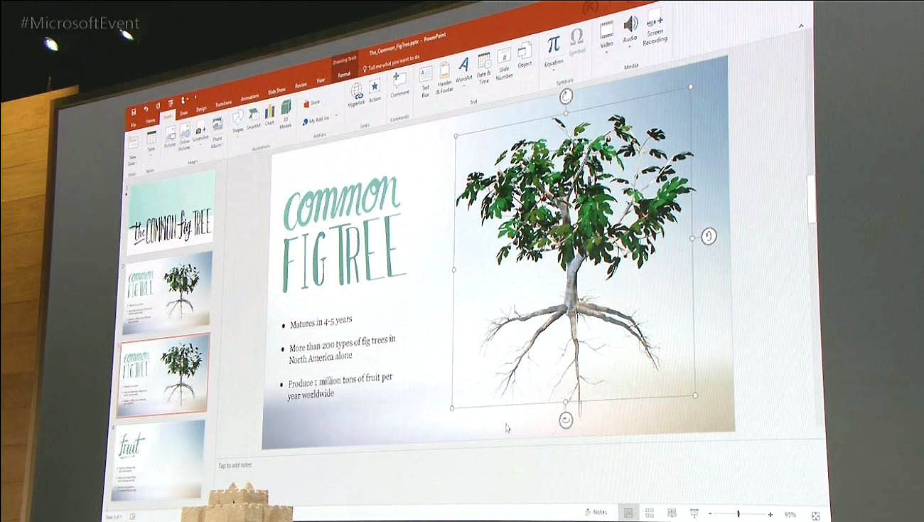 Paint 3D ne se conçoit pas uniquement comme un logiciel de création isolé, mais comme un outil graphique au service des autres logiciels, notamment ceux de la suite Office tel PowerPoint. Paint 3D est ainsi responsable de la prise en charge et du rendu des modèles 3D que l’on peut manipuler dans une présentation PowerPoint. C’est le moteur de Paint 3D qui permet de déplacer et rendre les modèles en temps réel dans l’interface des autres logiciels capables de s’interfacer avec lui.