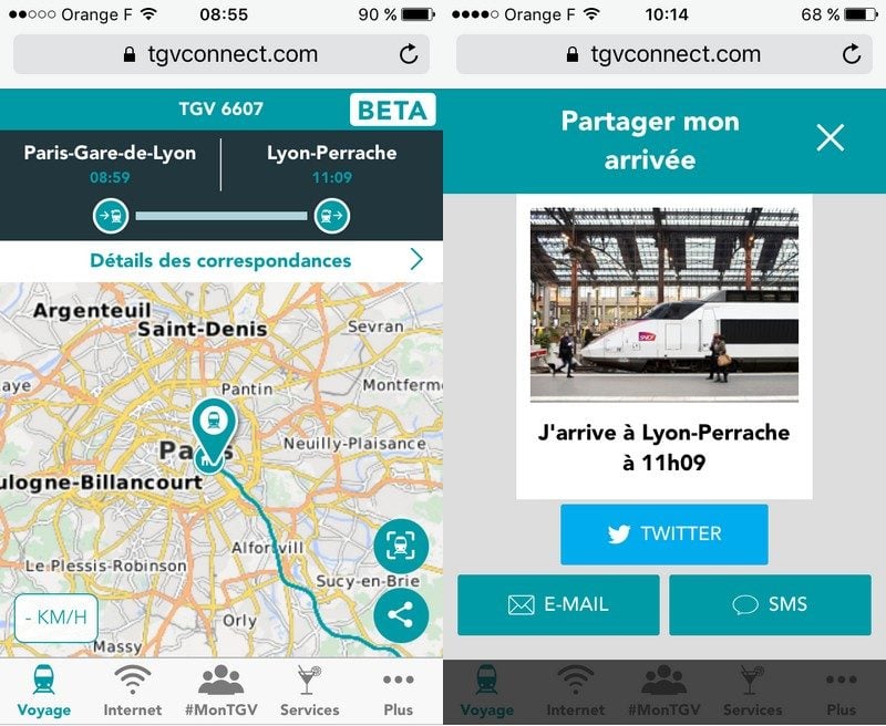 Le portail TGV Connect, en revanche, est prometteur. Tout d’abord, il y a quelques petites applications amusantes comme le fait de pouvoir commander une boisson au bar depuis son fauteuil ou encore partager automatiquement sur Twitter, mail ou SMS l’heure d’arrivée de son train avec une petite photo. Une alerte vous informe aussi quand le train atteint la vitesse de 300km/h pour partager l’événement sur les réseaux sociaux. On peut faire part de ses suggestions sur le portail et dialoguer avec le bot du TGV, baptisé Anatole à qui l’on demande quand ouvre la voiture bar, par exemple. A l’avenir, le portail devrait aussi proposer des contenus (presse, films) aux voyageurs via des partenaires. Tant pis pour la neutralité du net.