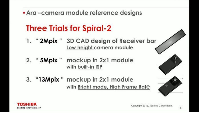 Vous préférez un appareil photo de 5 ou 13 mégapixels pour votre mobile ? Voici le genre de questions que vous pourrez vous poser demain si vous disposez d’un téléphone modulaire. En témoignent les premiers modules qu’un des partenaires historiques du projet ARA, le japonais Toshiba, vient de dévoiler à l’occasion du Modular Phone Forum de Singapour.