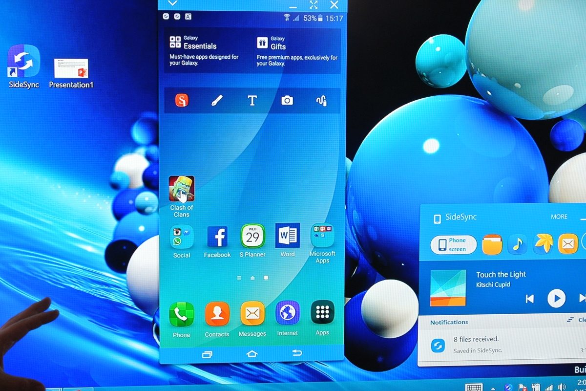 Samsung introduit aussi une nouvelle version de l’utilitaire SideSync, qui permet d’utiliser presque toutes les fonctions de son smartphone sur l’écran de son ordinateur lorsque les deux sont reliés en USB.