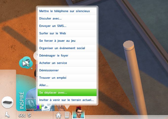 Vous pourrez toutefois vous rendre au bar, à la salle de gym, au musée ou chez vos voisins, seul ou accompagné. Pour vous déplacer, vous avez à disposition une voiture imaginaire (ou plutôt un téléporteur)… que vous utilisez tout le temps, même pour aller chez le voisin d’à côté. Tout déplacement hors de votre maison et de la rue occasionne des temps de chargement assez longs et finalement assez dissuasifs de mettre le nez chez les autres. Vous préférerez appeler vos amis Sims depuis votre téléphone portable et les convier chez vous plutôt que d’aller chez eux. C’est aussi depuis votre smartphone que vous pourrez trouver un travail, payer vos factures, surfer sur Internet ou encore déménager. On n’arrête pas le progrès.
