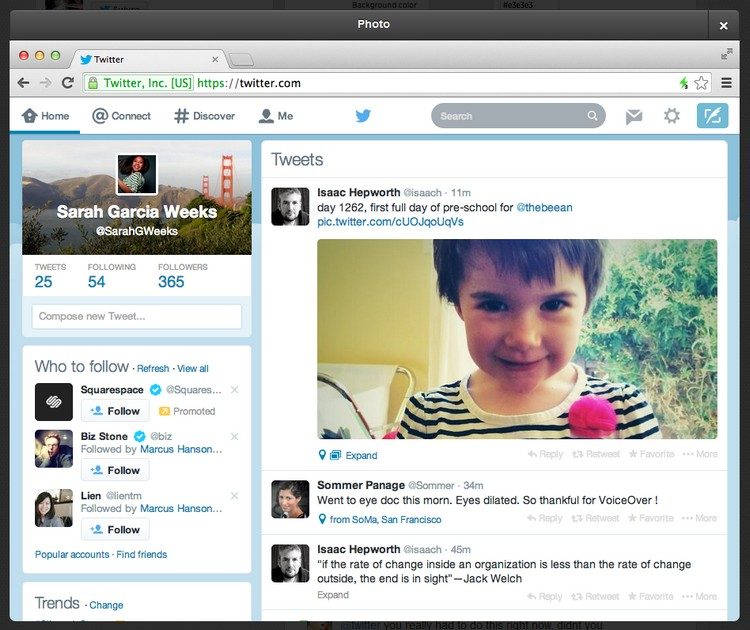 Après plusieurs mois de tests, Twitter a annoncé le 13 janvier 2014 sur son compte officiel @twitter qu’il relookait les pages de son site Internet pour ordinateurs de bureau afin de les faire ressembler davantage à celles de son application pour smartphones.