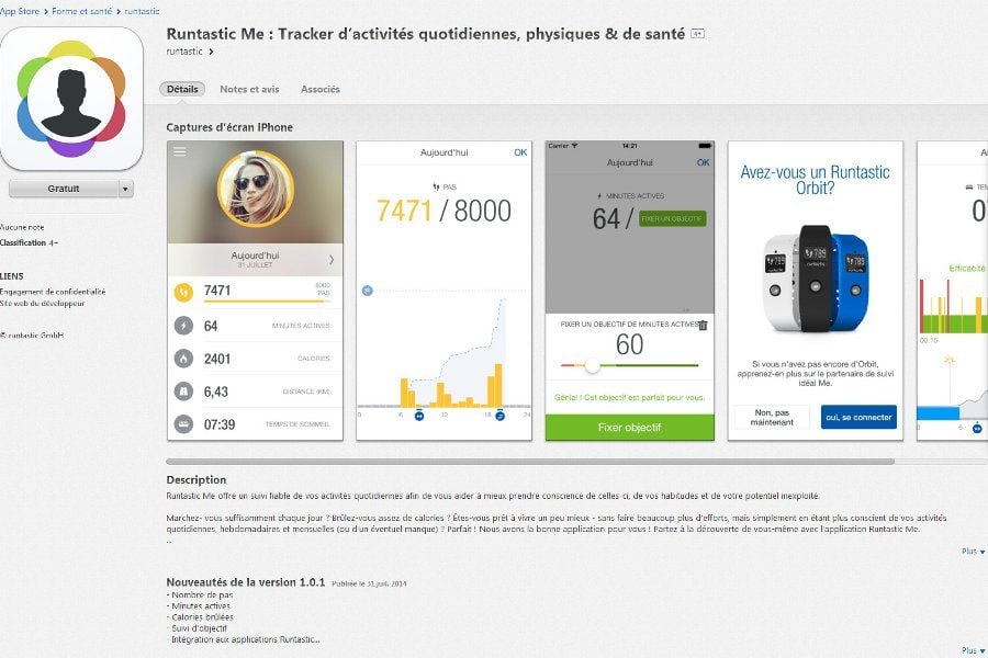 Et bien que l’engin soit a priori utilisable sans la moindre appli, Runtastic recommande tout de même l’utilisation de Runtastic Me sur votre mobile. Par son intermédiaire, vous synchronisez votre smartphone iOS (à partir de l’iPhone 4s) ou Android (version 4.3 ou ultérieure) et l’Orbit, en Bluetooth et pouvez ensuite visualiser les informations collectées.