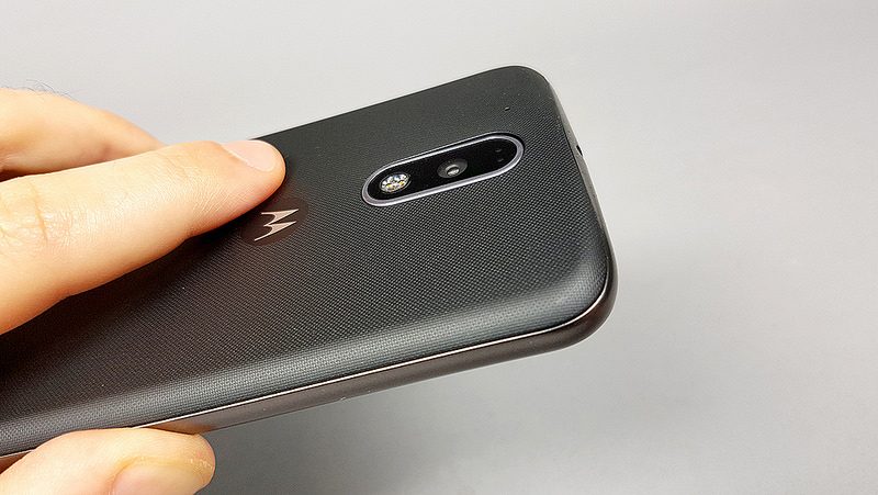 Le Moto G4 Plus garde rigoureusement les mêmes lignes que le Moto G4. Une coque en plastique, un design arrondi et une bonne épaisseur qui frôle le centimètre. L’appareil reste confortable à prendre en main, malgré une certaine perte d’espace autour de l’écran. Au-dessous de ce dernier, on trouve ce qui sera la seule différence visuelle entre les deux versions du smartphone, le capteur d’empreintes digitales. Contrairement à ce qui existe sur de nombreux smartphones, il ne fait pas office de bouton Home. Sa forme carrée – on l’aurait préféré arrondi – et son format réduit le rendent légèrement déséquilibré par rapport au reste du smartphone. Ce capteur est, en revanche, très réactif et permet de déverrouiller l’écran quasi-instantanément.