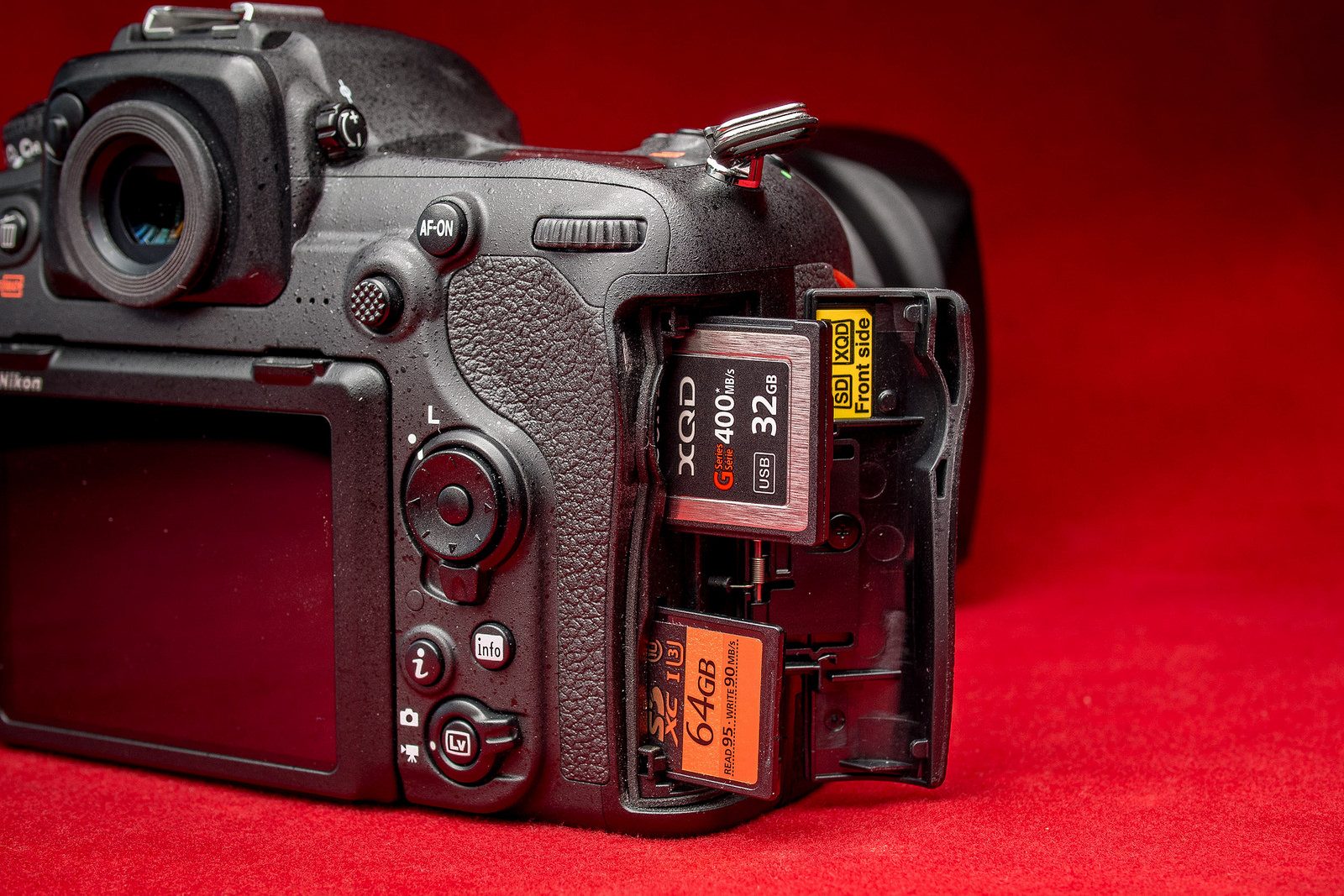 En plus d’un traditionnel emplacement SD, le D500 est en effet équipé d’un emplacement XQD, format jamais utilisé par Nikon en dehors d’un boîtier professionnel de type D4, D4s ou D5. Nikon est d’ailleurs la seule marque à utiliser le XQD dans les appareils photo, le format n’étant utilisé que dans certaines caméras professionnelles.