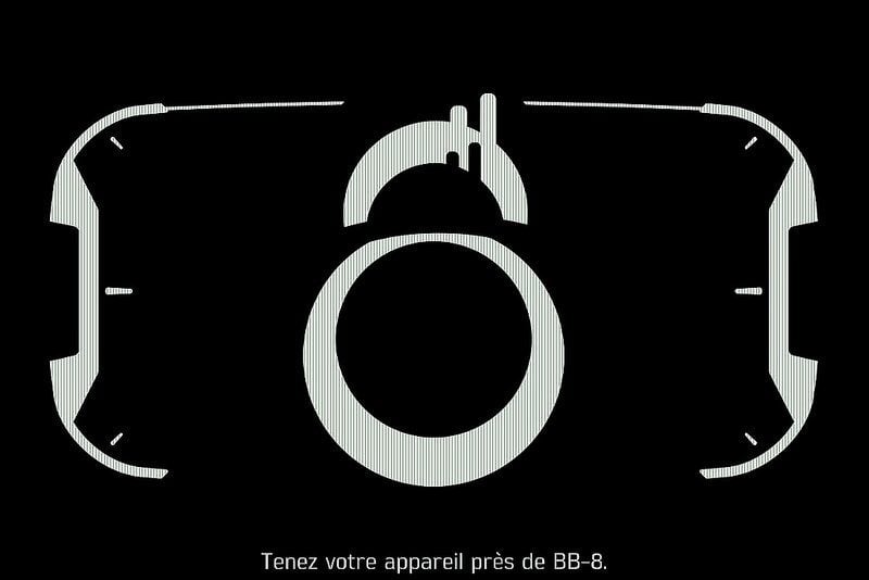 Conseil : approchez et orientez l’appareil mobile pour que la silhouette noire de BB-8 devienne de plus en plus grande.
