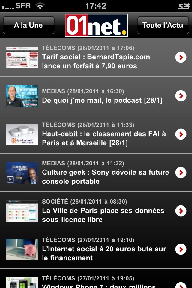 Avec l’application « 01net », consultez toutes les informations high-tech publiées en temps réel sur le site Internet. « 01net emploi » permet, pour sa part, de retrouver les dernières actualités liées à la formation et à l’emploi dans le domaine de l’informatique et des télécoms : les entreprises qui recrutent, les nouvelles techniques de recrutement, etc.