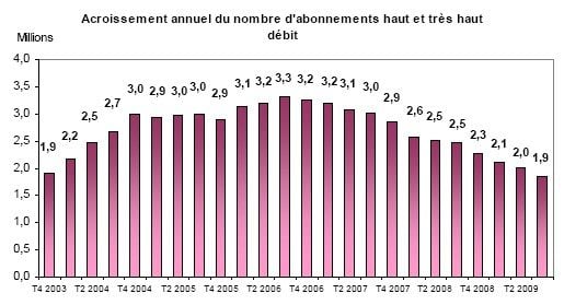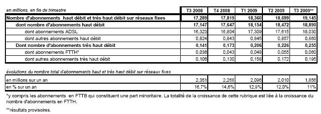 Il apparaît que la France comptait à cette époque 19,145 millions d’abonnements Internet haut débit et très haut débit, un chiffre en croissance de 11 % en un an avec un parc qui a augmenté de 1,85 million. La quasi-totalité – 18,89 millions – concernait des abonnements haut débit (dont 18,03 millions en ADSL).