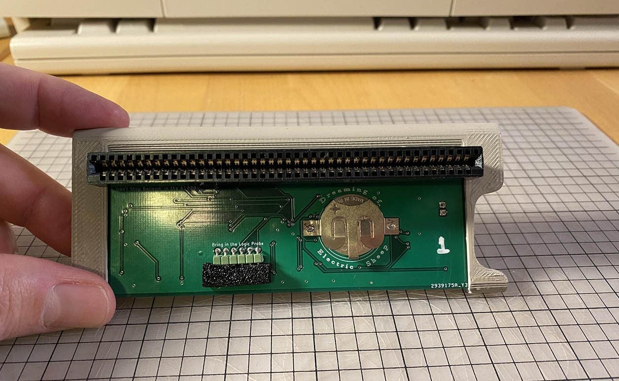 C’est là que l’accessoire Parceiro entre en scène : se branchant sur le port d’extension de l’Amiga 1000, ce petit boîtier intègre 8 Mo de SRAM, une pile bouton pour conserver la date et un lecteur de carte Micro SD intégrant une carte de 2 Go qui se comporte comme un disque dur où le système d’exploitation « Workbench » peut être installé. Le lecteur de disquette n’est plus alors utilisé que comme amorce initiale qui passe rapidement la main à la carte Micro SD.