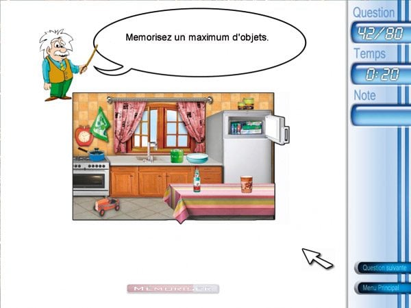 un délai très court, une méthode plutôt motivante. Les tests mélangent des épreuves de mémoire, calcul, logique, culture générale, observation, classement, rapidité et géométrie spatiale ; chaque domaine pouvant être approfondi séparément par le